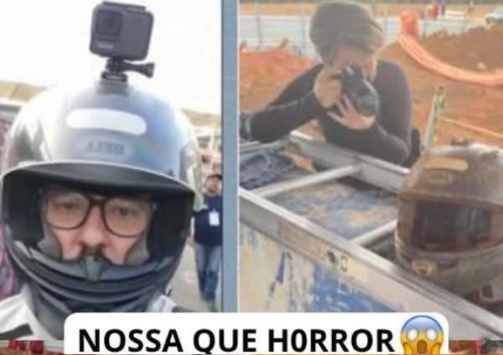 O capacete, em particular, apresenta sinais visíveis de impacto, o que sugere a possibilidade de uma luta corporal ou uma tentativa desesperada de fuga por parte da vítima.